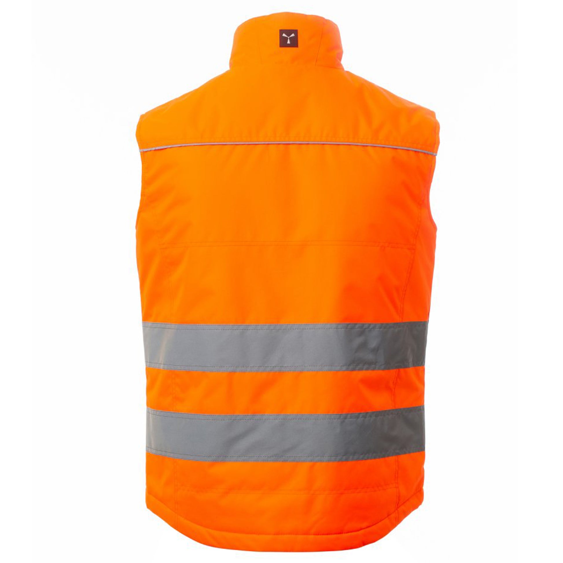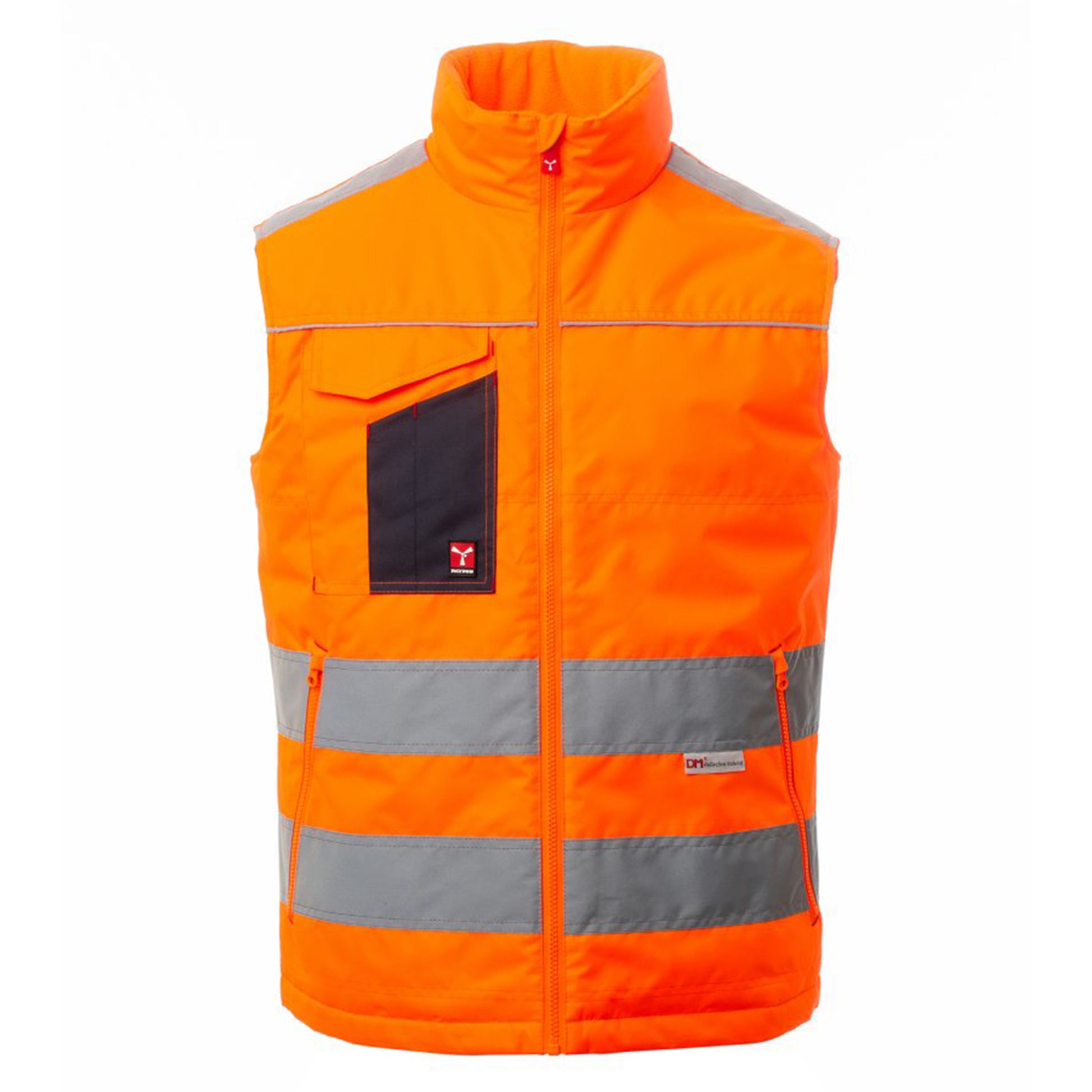 Doudoune rembourrée unisexe haute visibilité, avec bandes rétroréfléchissantes sur les épaules et le corps. Fermeture avec curseur en métal à verrouillage semi-automatique et tirette personnalisée. Une poche multifonction bicolore sur la poitrine avec anneau porte-badge et rabat de fermeture LOCK SYSTEM. Deux poches extérieures à zip. Col intérieur en fibre polaire. Une poche intérieure avec velcro.