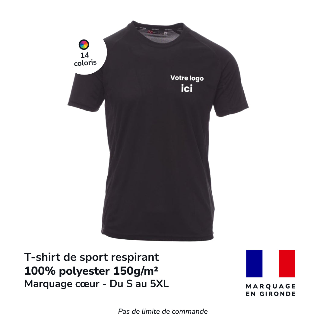 Conçu dans un textile respirant, léger et à séchage rapide, ce t-shirt est idéal pour le sport, les événements ou le travail en extérieur. Coupe confortable, adapté à une utilisation intensive. Marquage en DTF réalisé dans nos ateliers en Gironde. Un textile technique au service de votre image.